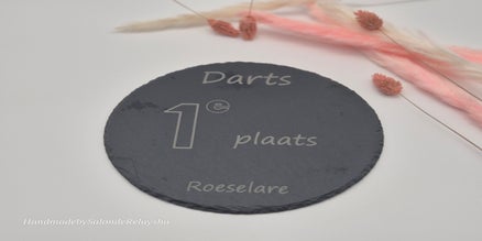 Rechthoekige leisteen in een houten frame, met een afmeting van 20 x 29 cm