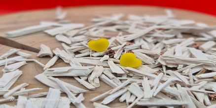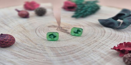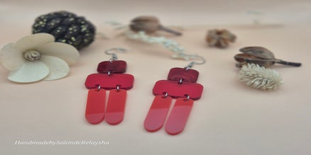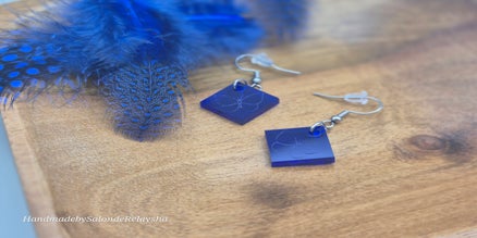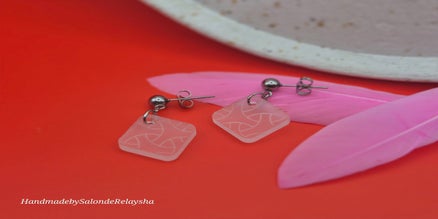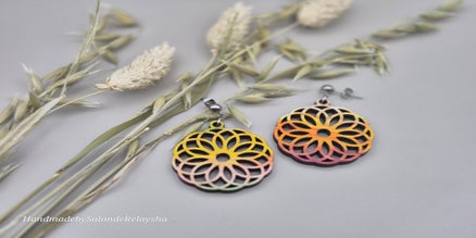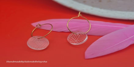 De oorbellen worden uit acryl/ hout gesneden, en al dan niet werd er een motief in gegraveerd.